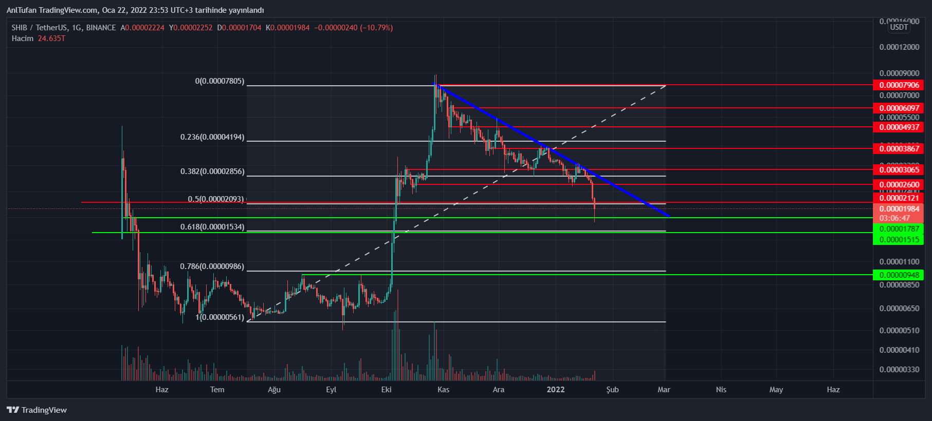Yayın saati itibariyle 0.00001985 dolar seviyelerinde bulunan SHIB, düşen trendini kıramadığı için alt destekleri deniyordu. Bu denemelerin ardından Bitcoin’in de satış yemesiyle desteğini kıran SHIB sert düşüş yaşadı.