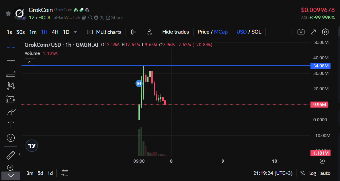 Piyasadaki satış baskısına rağmen ilk çıkışından sonra 30 milyon dolar piyasa değerini aşan GrokCoin, sürecin ilerlemesiyle birlikte 10 milyon dolar seviyelerine düşmüş durumda.