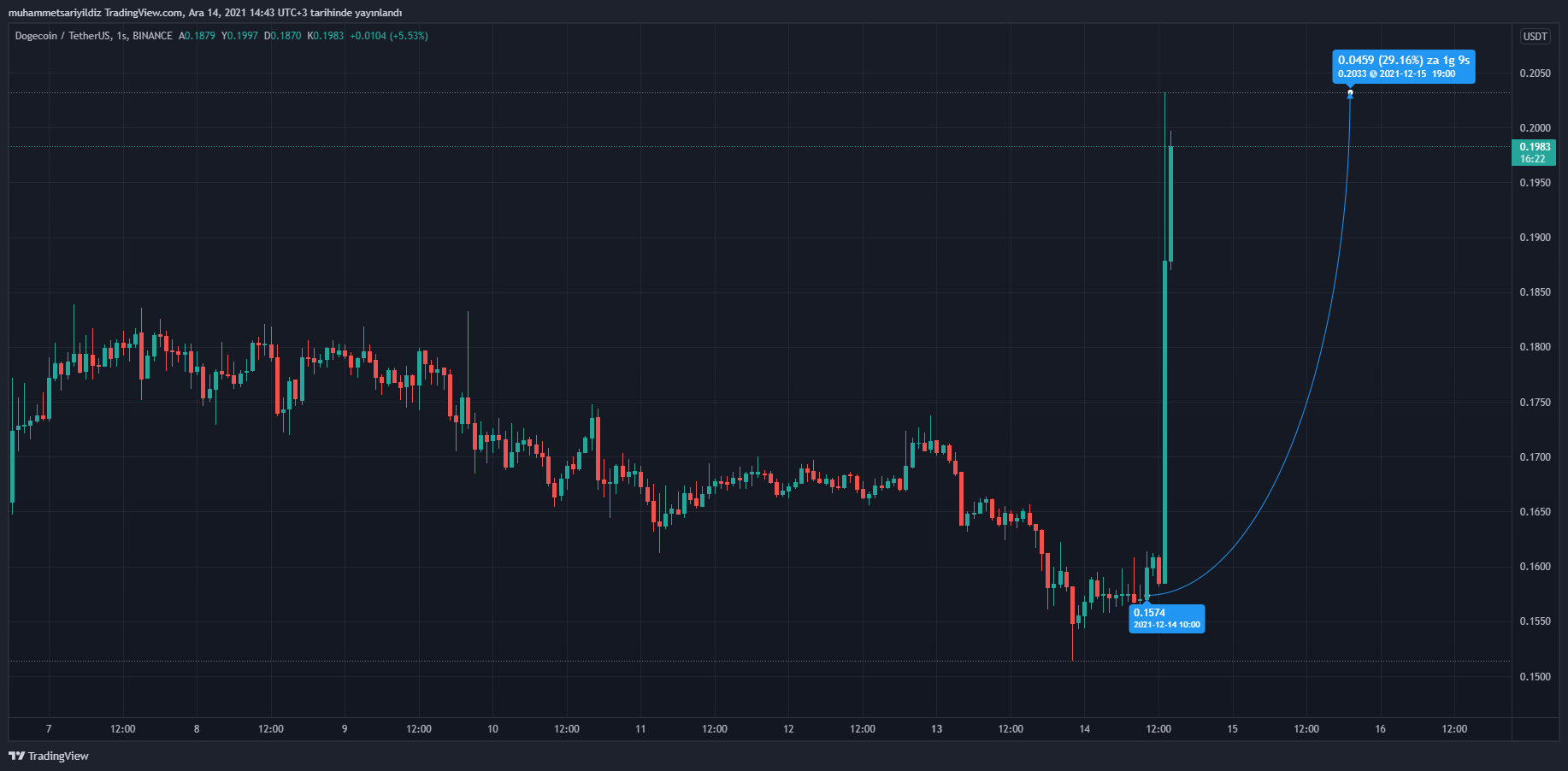 DOGE fiyatında beklenen twit hayat buldu ve ciddi yükselişler gerçekleşti. 1 saatlik mumda %30’a yakın yeşil mumlar biriktiren DOGE’de, beklentiler yine 1 dolara döndü.
