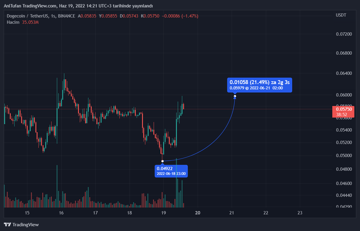 İlerleyen saatlerde 0.060 dolar kritik direnç seviyesini aşması halinde yükselişlerine devam etmesi beklenen Dogecoin, Bitcoin‘in tekrardan düşüşe geçmesi halinde ise 0.55 dolar desteğine kadar bir geri çekilme yaşayabilir.