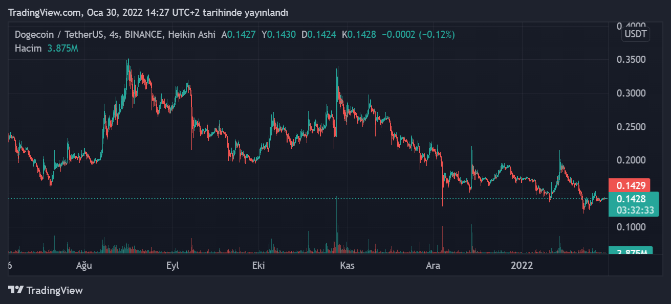 Bunlara rağmen DOGE, tüm zamanların en yüksek seviyesi olan 0.74 dolara çıktığı günden bu yana düşüş trendinde işlem görüyor. Haberin yazıldığı sırada ise 0.1400 dolara çok yakın seviyelerde el değiştiriyor.