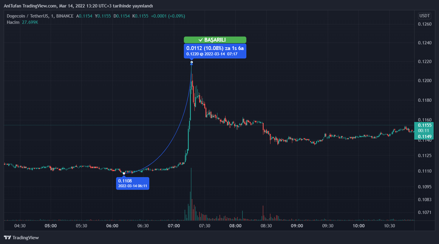 Bu açıklama ardından ise ünlü meme token Dogecoin %10’a yakın yükseliş yaparak değerine değer kattı.