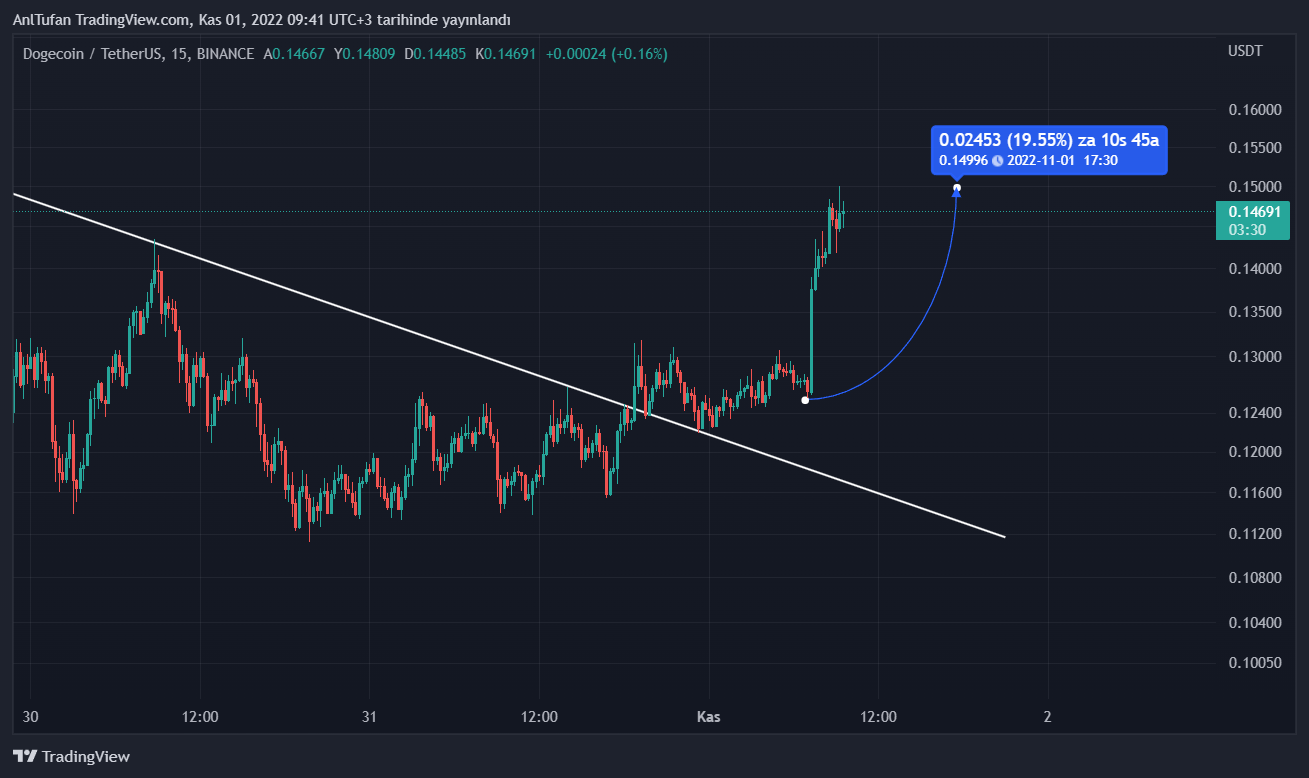 Sürecin ilerlemesiyle birlikte Elon Musk’ın paylaşımı sonrasında yüzde 20 oranında değer kazanan Dogecoin (DOGE), önümüzdeki günlerde de yükseliş yaşayacağı tahmin ediliyor.