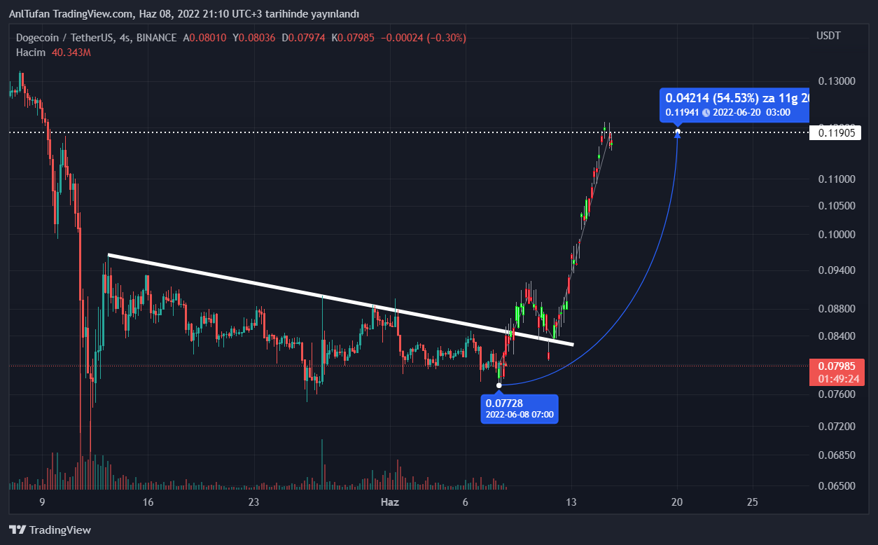 Olası bir Twitter satın alımının gerçekleşmesi halinde kısa süre içerisinde düşen trendini kırabilecek olan DOGE, kısa süre içerisinde 0.12 dolar seviyelerinde bulunan direnç seviyesine ulaşabilir.