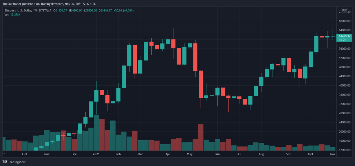 Yazının yazıldığı sırada Bitcoin (BTC), günlük ve haftalık grafikte 61.800 dolar seviyesinde yatay hareketine devam ettiği görülmekte.