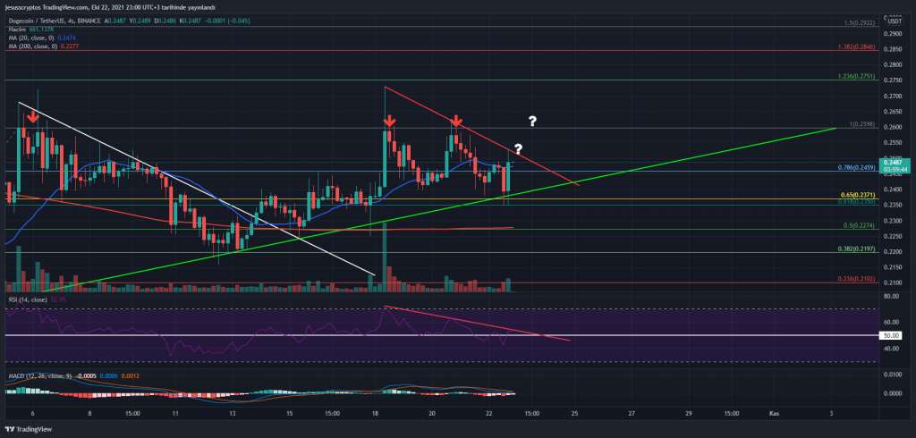 Bu noktada dirençle karşılaşan DOGE’un yaklaşık olarak 0,252 dolar üzerindeki kapanışlarıyla bu yükseliş sürecine başlaması bekleniyor. Ayrıca Musk’ın tweetinin önümüzdeki günlerde farklı bir planı olduğu düşüncesini akıllara getiriyor.