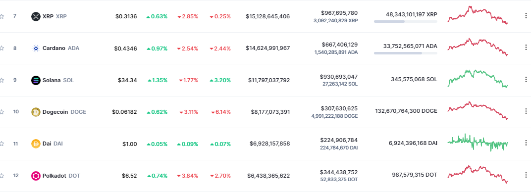 Başarılı bir veri sağlayıcısı olan CoinMarketCap aktardıklarına göre, şuan itibariyle 10. sırada yer alan Dogecoin, ilerleyen günlerde yükselişe başlayamaması halinde ilk 10 kripto paranın dışarısında kalabilir.