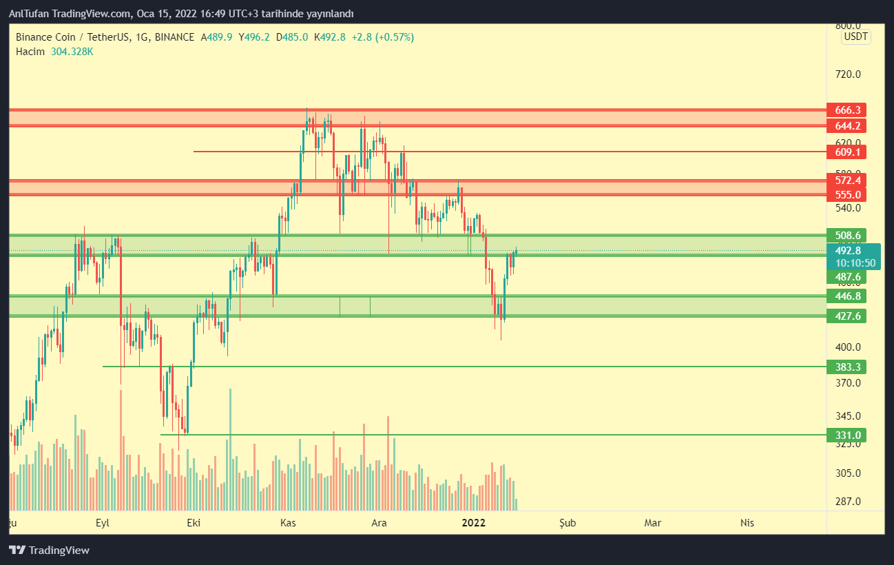 490 – 510 dolar seviyesinden reddedilmesi halinde 445 – 430 dolar aralığına gerileyebilecek olan BNB, bu seviye altında kapanışlar yapması beklenmiyor.