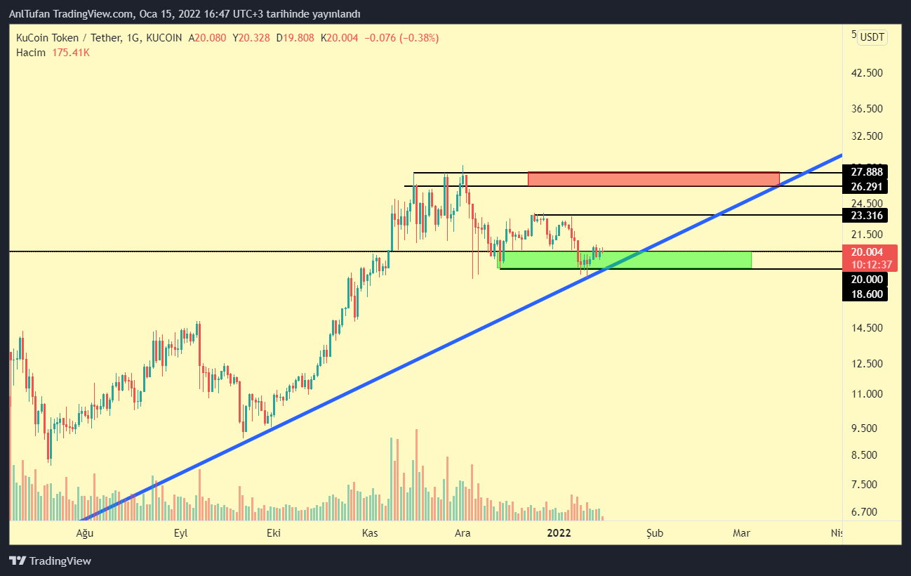 20 – 18 dolar destek seviyesi aralığından yatırım yapabilecek olan yeni yatırımcılar, 26 – 28 dolar direnç seviyesinin kırılımını bekleyebilirler. Bu seviye üzerine çıktığı sürece sert yükselişler yaşayabilecek olan KCS, yeni ATH seviyeleri oluşturacaktır.