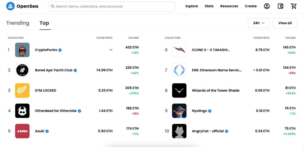 23.10.2022 AngryCat NFT koleksiyonu, OpenSea’de ilk 10’a girdi.