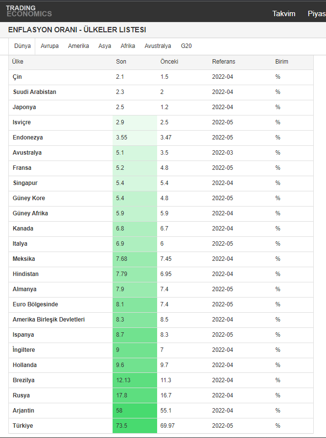 Ülkemizde ise an itibariyle yıllık enflasyon oranı %73.5 oranına dayanmış durumda. Bu denli yüksek enflasyon ise diğer ülkelerde de olduğu gibi hayat pahalılığını artırmaya devam ediyor.