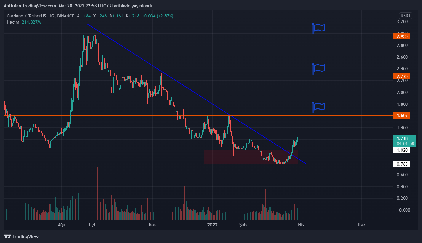 1 dolar seviyesi üzerinde kaldığı sürece olumlu olabileceğimi ADA, ilerleyen günlerde 1.60 dolar direnç seviyesine kadar yükselmesi bekleniyor.