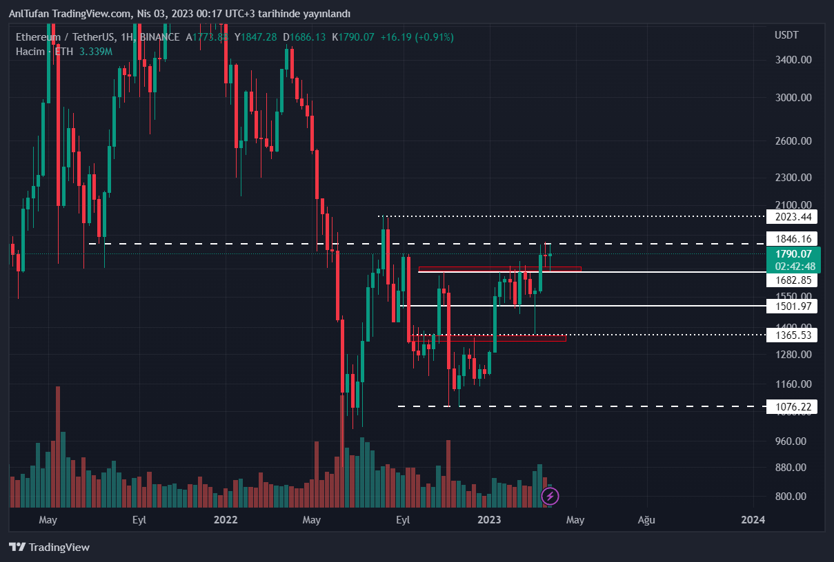 Bu hafta itibariyle 1.800 dolar seviyelerinde akümüle olan Ethereum her ne kadar hafta içerisinde 1.850 kritik direncine kadar yükseliş yaşamış olsa da, bu direnç seviyesini aşamadığı görüldü.