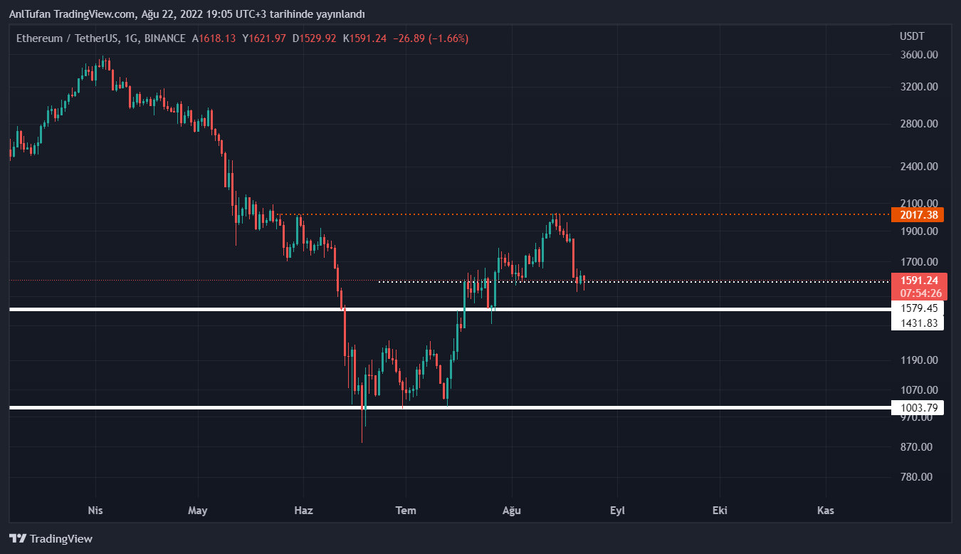 Kripto para sektörünün lider altcoini olan Ethereum, son günlerde tekrardan değer kaybetmeye başladığı görülüyor. Geçtiğimiz dönemlerde çok ciddi miktarda yükseliş yaşayan ETH, bu yükseliş serüvenine devam edebilmesi için ise 1580 dolar desteğini kaybetmemeli.
