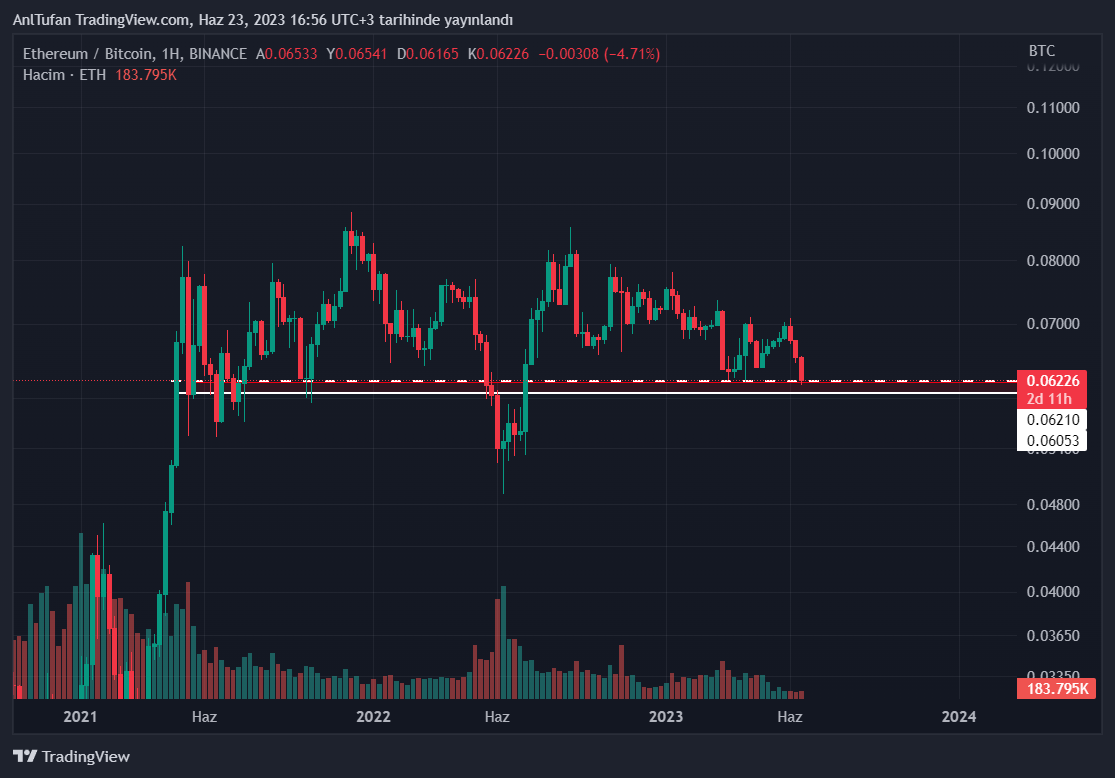 Lider altcoin Ethereum (ETH) şuan itibariyle BTC karşısında 2022 yılının Temmuz ayındaki seviyelere geriledi. ETH dahi Bitcoin’in yükselişlerine ayak uyduramıyor.