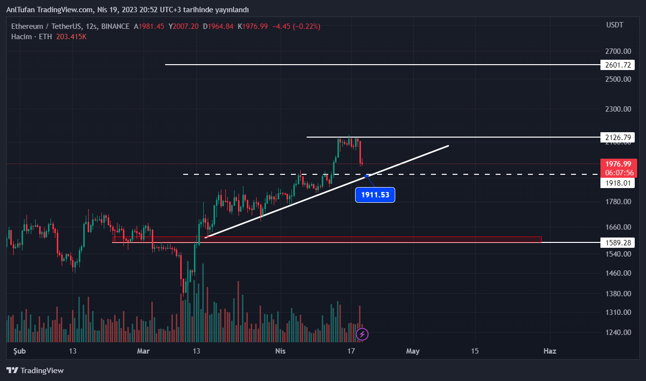1.911 dolar seviyelerine denk gelen bu yükselen trend, ilk etapta Ethereum’daki düşüşlerin sona ermesini sağlayabilir. Bu trendden yukarı yönlü bir tepki alabilecek olan ETH, 2.125 doları hedefleyebilir.