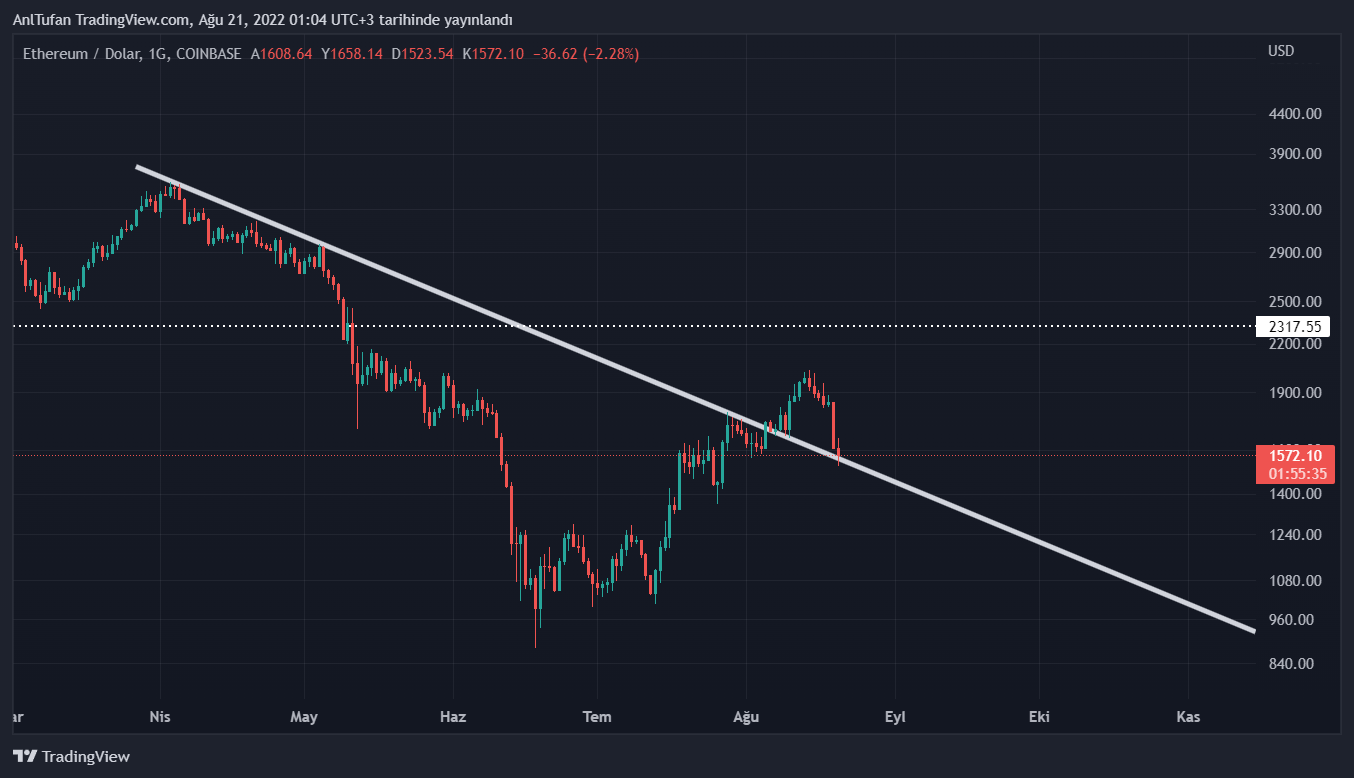 Lider altcoin olan Ethereum şuan itibariyle olumlu gibi gözükmekte. 1550 dolar trend desteğini kaybetmeyen ETH, bir retest gerçekleştirmişe benzemekte.