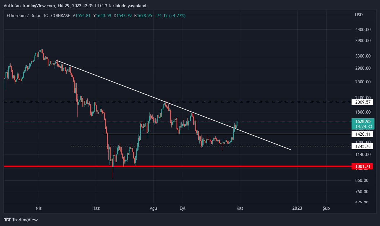 1.500 dolarda bulunan düşen trendin kırılmasının ardından retest gerçekleştiren ETH, artık daha yüksek seviyeleri hedeflemiş gibi gözükmekte.