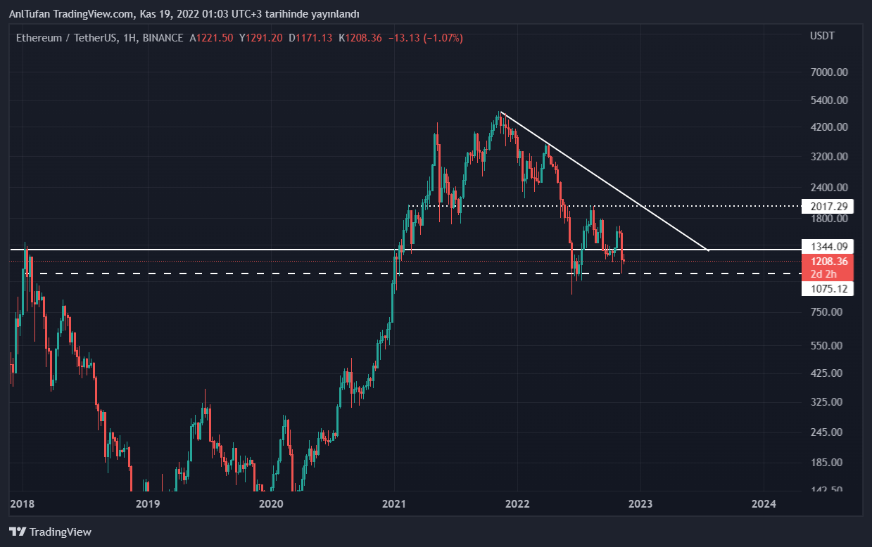 1.075 dolar desteğini kaybetmesi halinde 700 dolara kadar gerileyebilecek olan ETH, 1.350 doları aşması halinde ise tekrardan 2 bin doları görebilir.