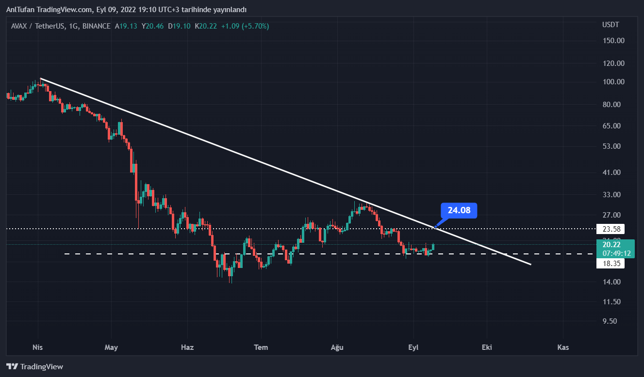 Haberimizin yazıldığı esnada 20 dolar seviyelerinden işlem gören AVAX, ilerleyen saatlerde düşen trend ile yatay direnç seviyesi olan 24 dolara ulaşmayı başarabilir.