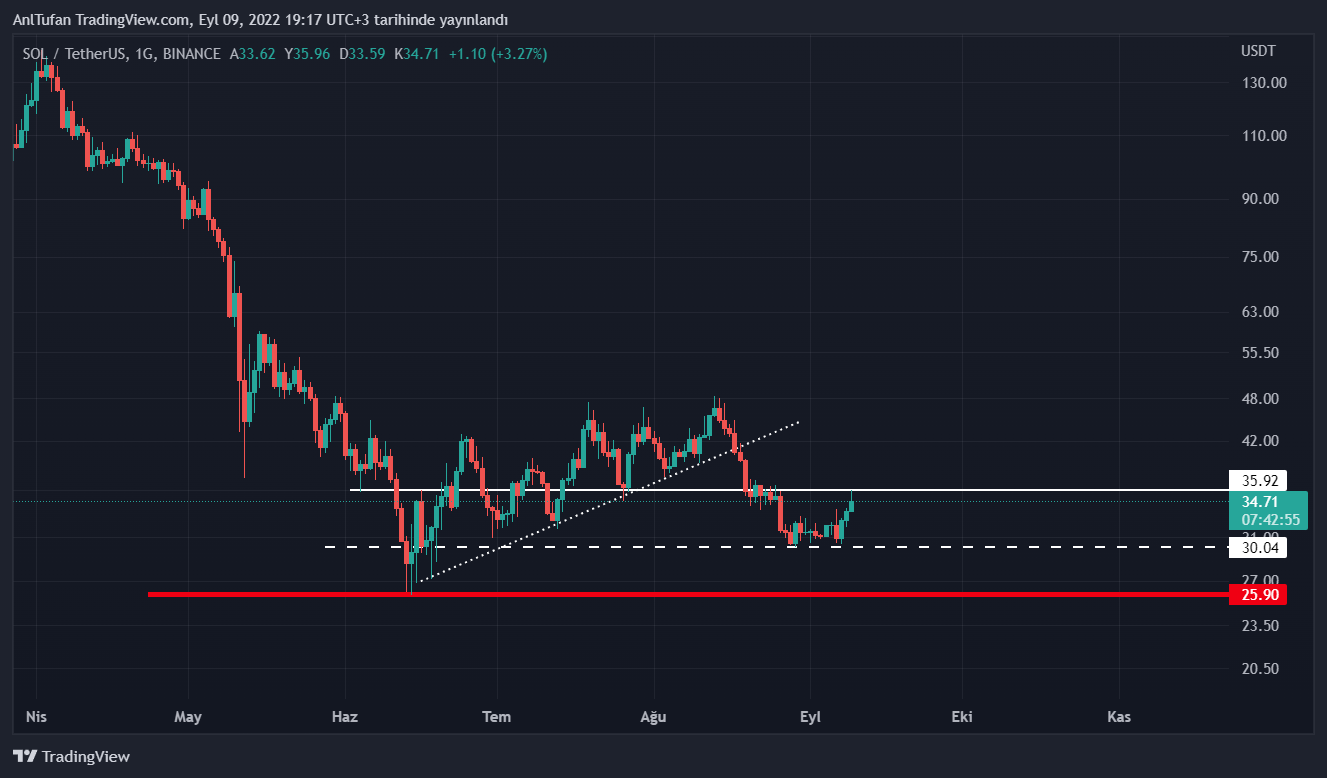 AVAX’a nazaran çok daha bearish gözüken SOL, Bitcoin’in yükselişleri ile birlikte 30 dolar major destek seviyesinde tutunmayı başardı.
