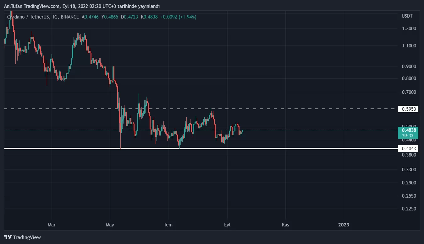 Çok uzun bir süredir 0.40 – 0.60 dolar aralığında akümüle olmaya devam eden Cardano, ilerleyen günlerde Bitcoin‘in çöküş yaşamadığı takdirde bu bölgenin üst trendine ulaşacağı tahmin ediliyor.