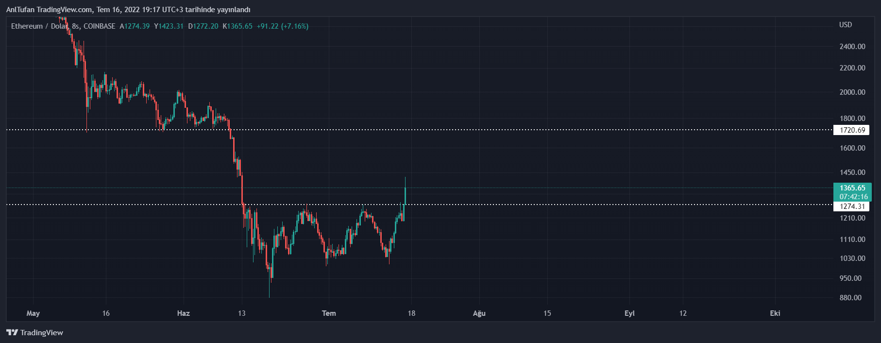 Kritik direnç seviyesi olarak görülen 1275 doları kırmayı başaran Ethereum 1424 dolar seviyelerine kadar yükseliş yaşamayı başarmış durumda.