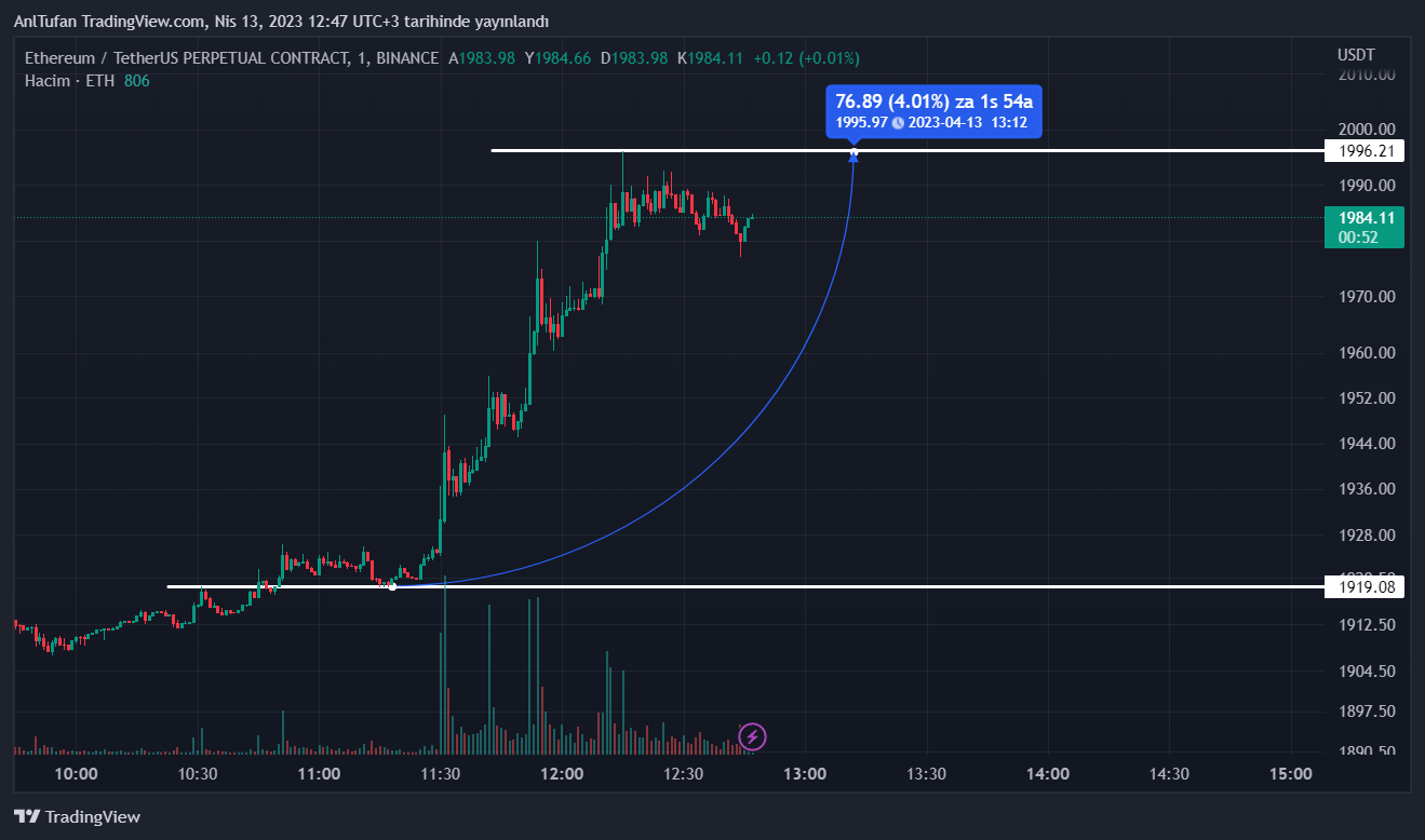 Önümüzdeki saatlerde ise satıcı baskısının artmaması halinde, ETH’nin 2 bin dolar direncini aşacağı tahmin ediliyor. Böyle bir senaryoda, kripto piyasasındaki FOMO ciddi miktarda artacaktır.