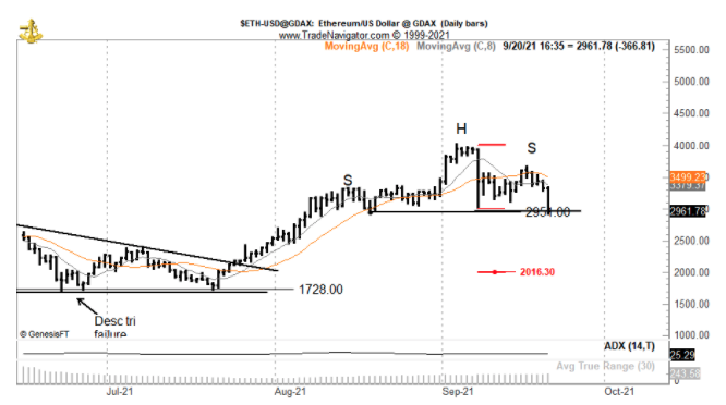 Kripto para piyasasının günlerdir yaşadığı düşüşten en çok altcoinler ve spesifik olarak da Ethereum (ETH) etkilendi. Toplam piyasa değerine göre en büyük ikinci kripto para biriminin 2.954 dolar desteğinin altına inmesi yetmezmiş gibi şimdi de 2.800 dolar desteği üzerinde çok kritik bir formasyon oluştuğu görülüyor.