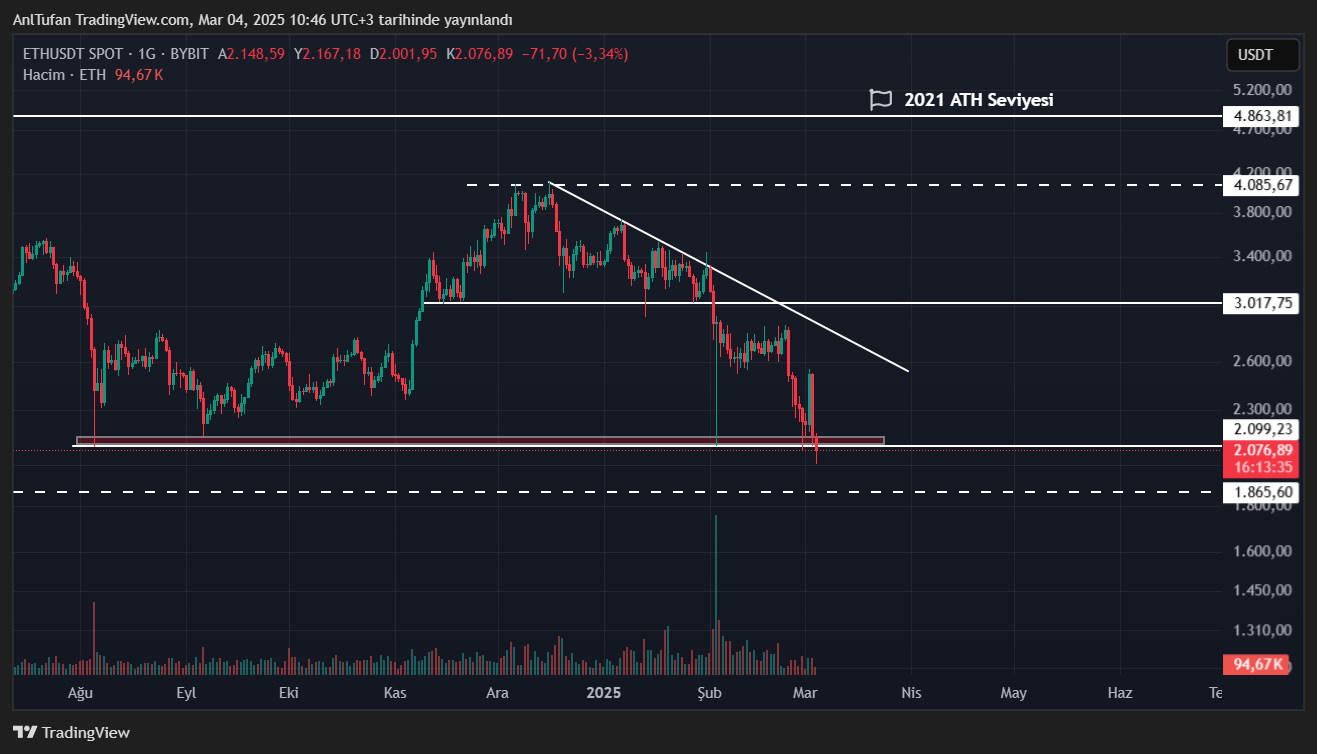 En son 2 bin dolar seviyesini 2023 yılının sonlarında gören Ethereum (ETH), ABD kripto rezerv gelişmelerine rağmen tarihin en kötü dönemlerinden bir tanesini geçirmekte.