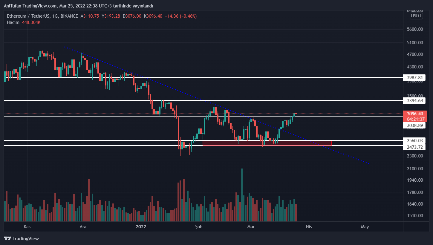Haberimizin yazıldığı esnada 3090 dolar seviyelerinde konumlanan ETH, BTC‘nin 45.000 dolara yükseldiği esnada 3200 dolar seviyelerine kadar ulaşmıştı.