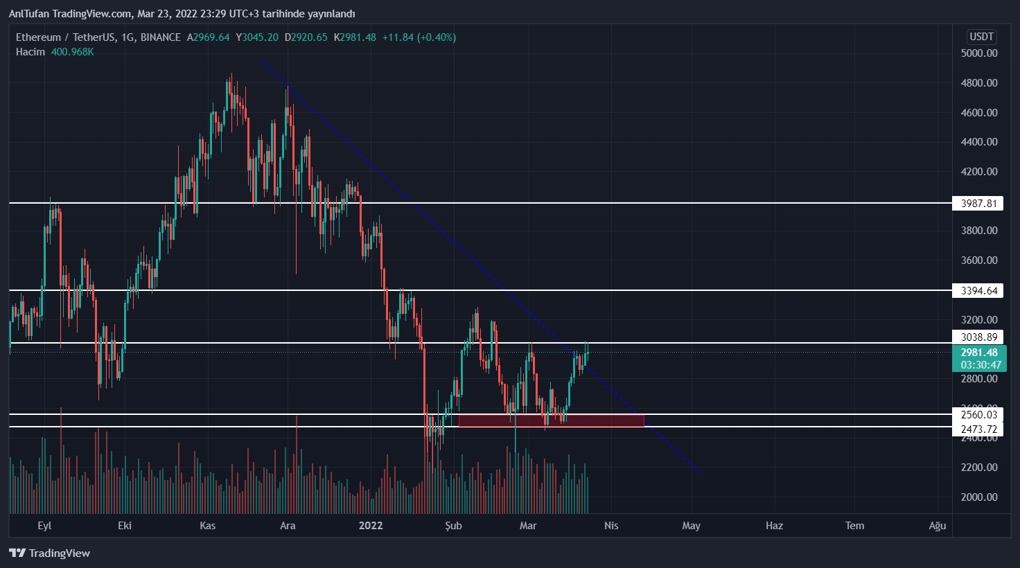 Yayın saati itibariyle 2980 dolarda bulunan lider altcoin, halen 3000 dolar seviyesinde bulunan direnç seviyesini kırmayı başaramadı.