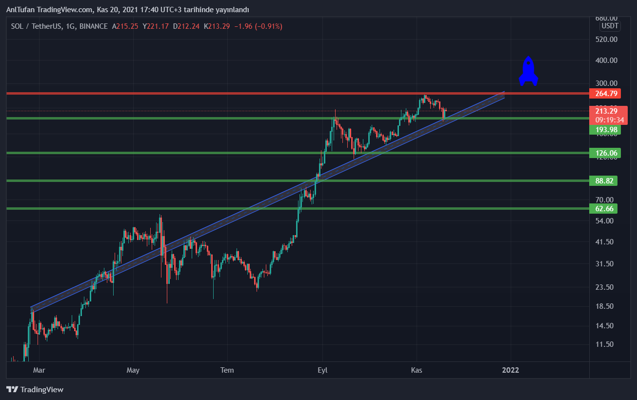 Aşağıdaki grafikte de belirttiğimiz gibi destek seviyeleri okurlarımız için yeni yatırımcı girişi için güzel gözükmekte. Sağlam bir proje olan SOL, önümüzde ki günlerde piyasada tekrardan adından çokça söz ettirecek gibi duruyor.