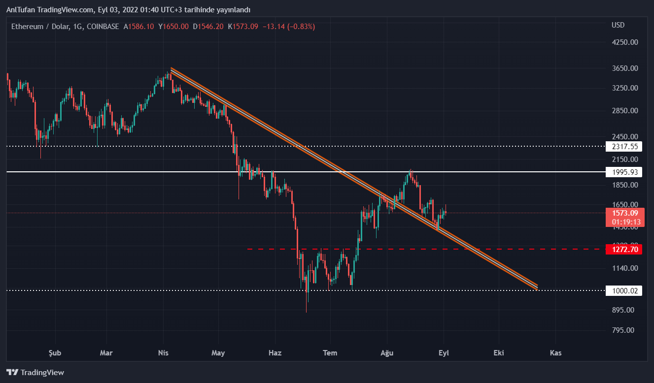 Şimdilik yaşadığı değer kayıpları ile kritik düşen trendine bir retest hareketi gerçekleştirdiği tahmin edilen ETH, bu trendi kaybetmemesi halinde 2300 doları hedefleyebilir.
