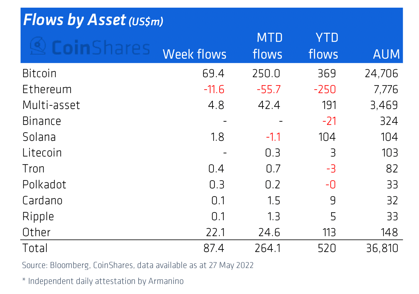 CoinShares’in 31 Mayıs’ta yayınlanan haftalık piyasa raporuna göre, yatırımcılar 2022’de Ethereum tabanlı yatırım fonlarından 250 milyon dolar çekti.