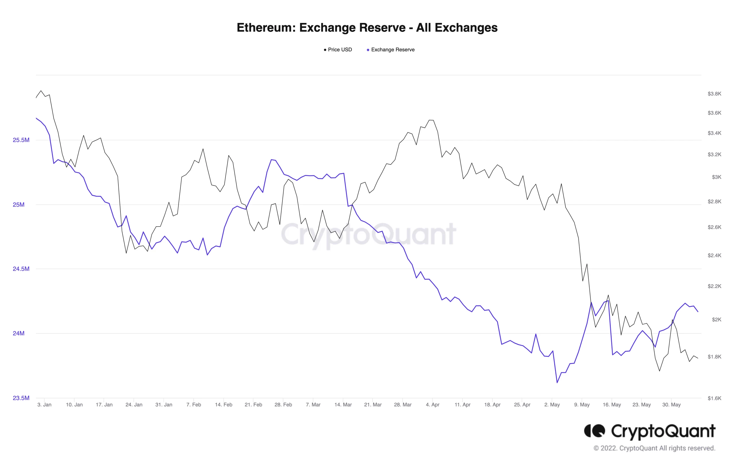 CryptoQuant verilerine göre, işleme açık bütün kripto borsalarındaki toplam Ethereum sayısı, Mayıs ayından bu yana 550.459 Ethereum arttı.