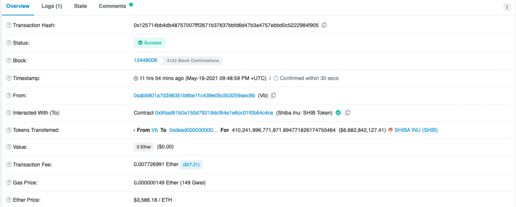O tarihte 67 milyon dolarlık SHIB satan ve 1 milyar dolarlık SHIB’i bir hayır kuruluşuna bağışlayan Buterin, elinde ise milyarlarca dolarlık SHIB olması ile korku saçıyordu. Vitalik Buterin 16 Mayıs tarihinde yaptığı bir transferde ise bu korkuyu tamamen ortadan kaldırdı. Ethereum’un kurucu ortağı, 6,7 milyar dolarlık SHIB tokenlerini kullanılamaz bir adrese göndererek resmen yaktı.