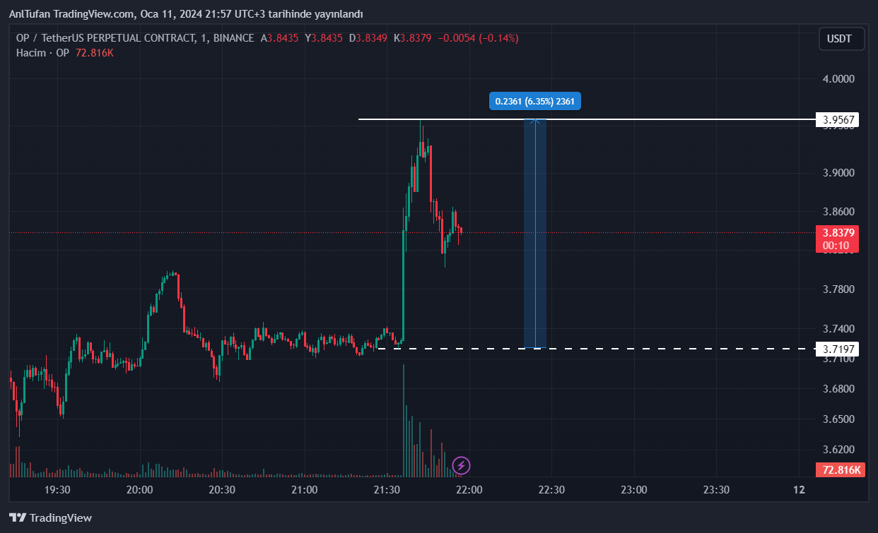 Vitalik Buterin’in bu paylaşımı sonrasında OP isimli altcoin’in kısa bir süre içerisinde %6’lık bir sıçrama yaptığı görüldü. OP dakikaların ilerlemesiyle yükselişlerinin bir kısmını kaybetti.