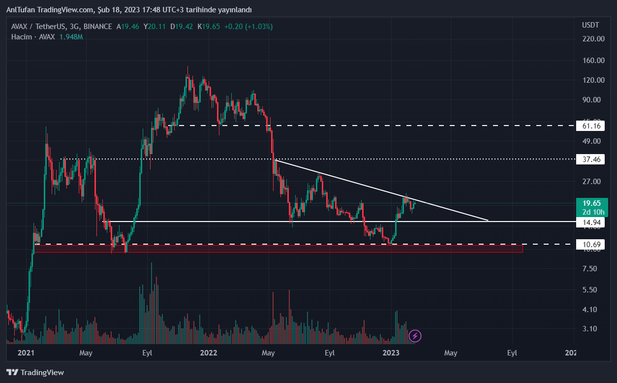11 dolar destek seviyesinden 22 dolar seviyelerine kadar yüzde 100’lük bir yükseliş yaşayarak değerini 2’ye katlayan AVAX, haberimizin yazıldığı esnada 19.65 dolar seviyelerinden işlem görüyor.