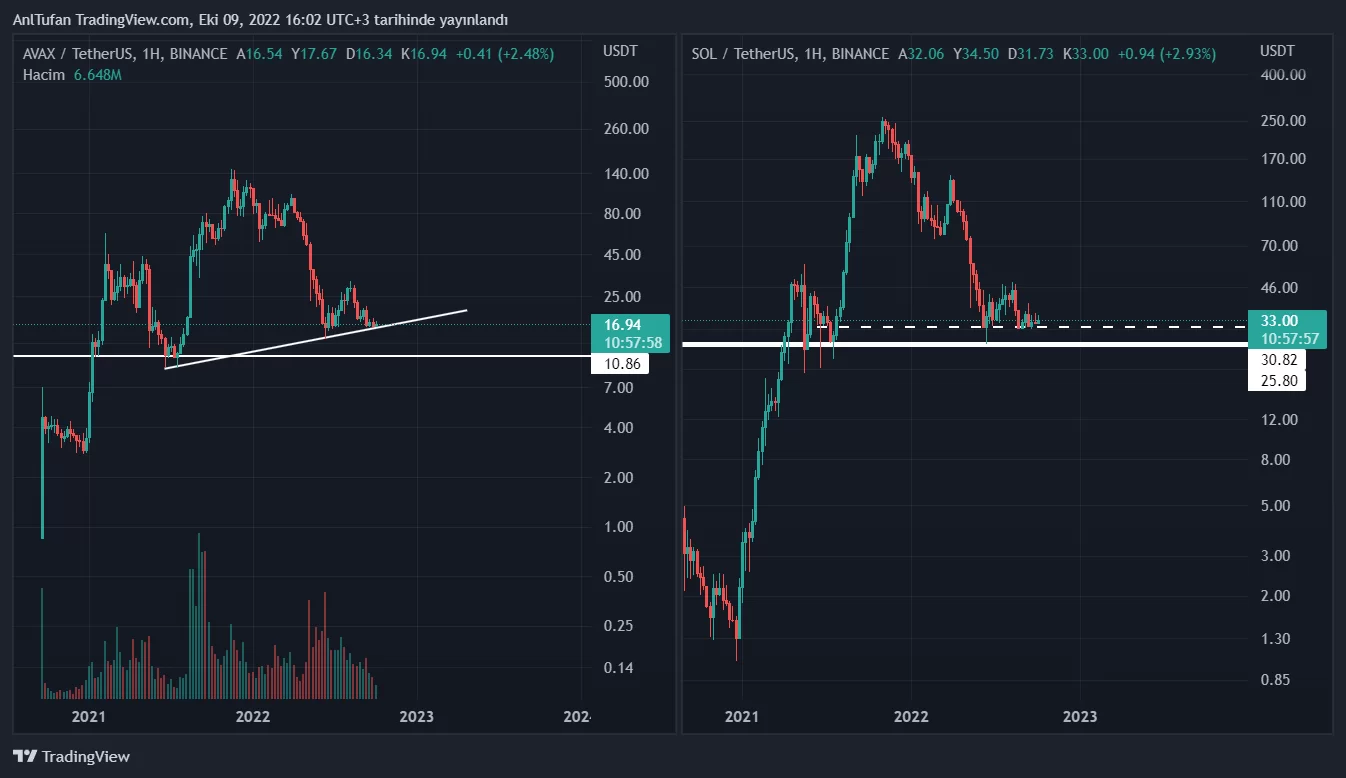 AVAX’ın ilerleyen günlerde düşüş yaşamaması için 15 doları kaybetmemesi gerekirken SOL’da bu desteğin 30 dolar olduğu görülüyor.