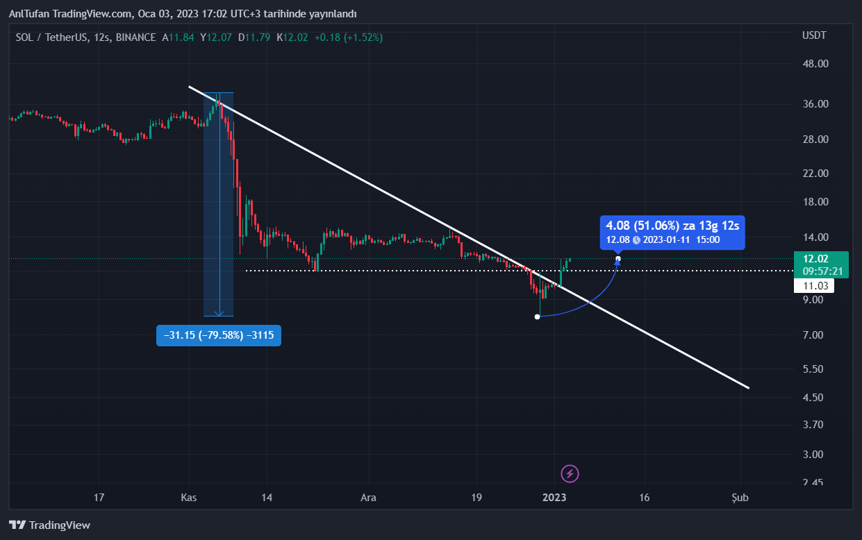 2 ay içerisinde yüzde 80’lik bir düşüş yaşayan Solana, son günlerde ise tekrardan küllerinden yeniden doğmaya başladı. Geçtiğimiz günlerde 8 dolar seviyelerine gerileyen SOL, şuan itibariyle 12 dolardan işlem görmekte.