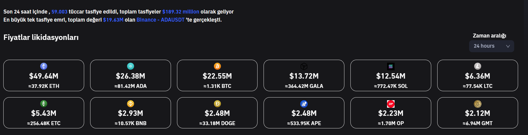“GALA, SOL, ltc, etc, bnb, doge, ape, op ve gmt”