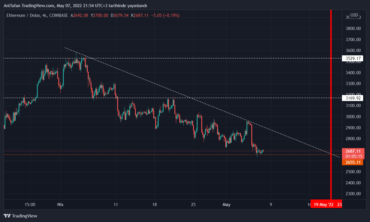 Son zamanların zirvesi olarak kabul edilen 3595 dolar seviyesinden düşmeye başlayan Ethereum, 2650 dolar kritik desteğine kadar gerilemiş durumda.