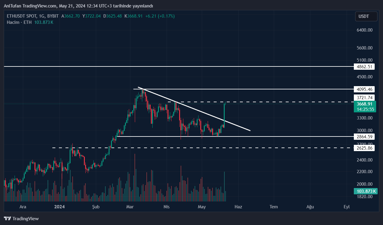Şuan itibariyle her ne kadar dünkü yükselişlerin bir düzeltmesi yaşanması olası gibi dursa da, spot Ethereum ETF kararının 23 Mayıs tarihinde açıklanacak olduğunu unutmamak gerekiyor.