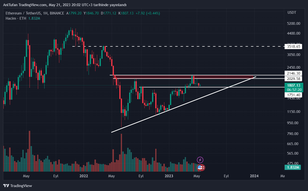 Bu haftalık kapanış her ne kadar boğa sinyali kadar güçlü olmayacak olsa da, yine de olumlu bir kapanış olacağını söyleyebiliriz. Böyle bir kapanış sonucunda önümüzdeki hafta ETH’nin 2 bin – 2.150 dolar seviyelerine bir yükseliş yaşaması olası gibi gözüküyor.