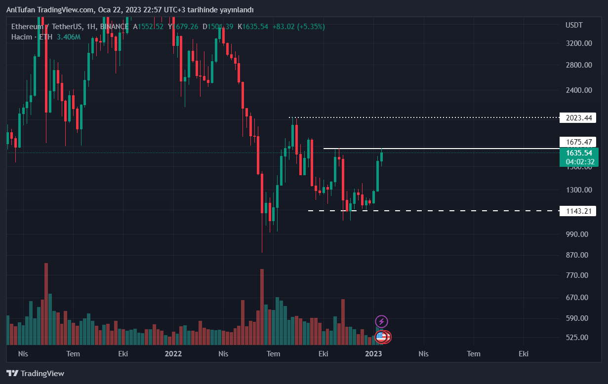 Bu gece TSİ 03.00’da ise Ethereum’da haftalık kapanış gerçekleşecek. Altcoin’lerin lideri olan ETH’nin bu haftalık kapanışı 1.675 doların üzerinde gerçekleştirmesi gerekmekte.