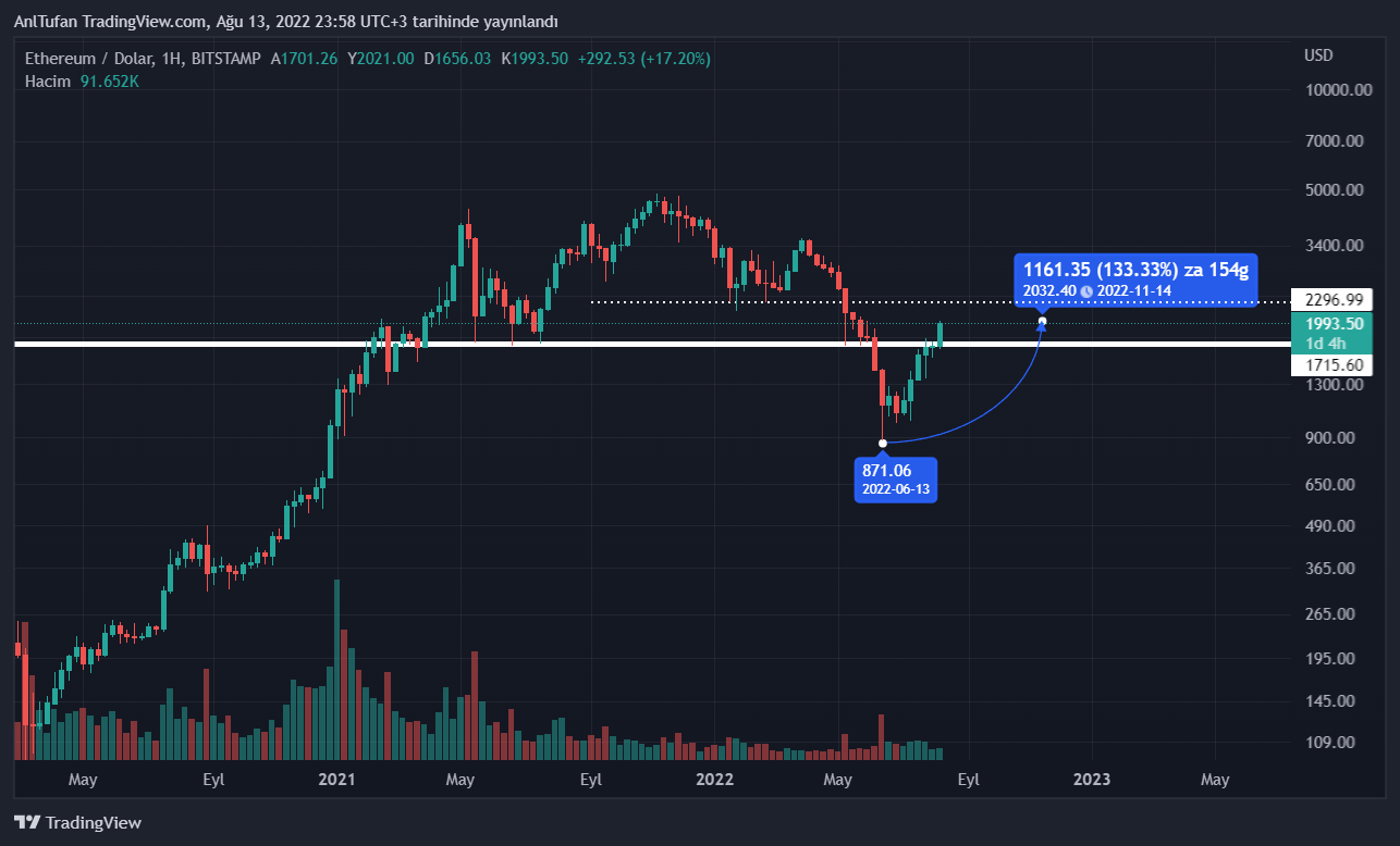 Ethereum‘un son 6 haftadır yükseliş yaşaması dikkat çekiyor. Dip seviyeden yüzde 135’e varan bir yükseliş serüveni yaşayan ETH, ilerleyen haftalarda 1700 dolar desteğine kadar bir düşüş yaşayabilir.