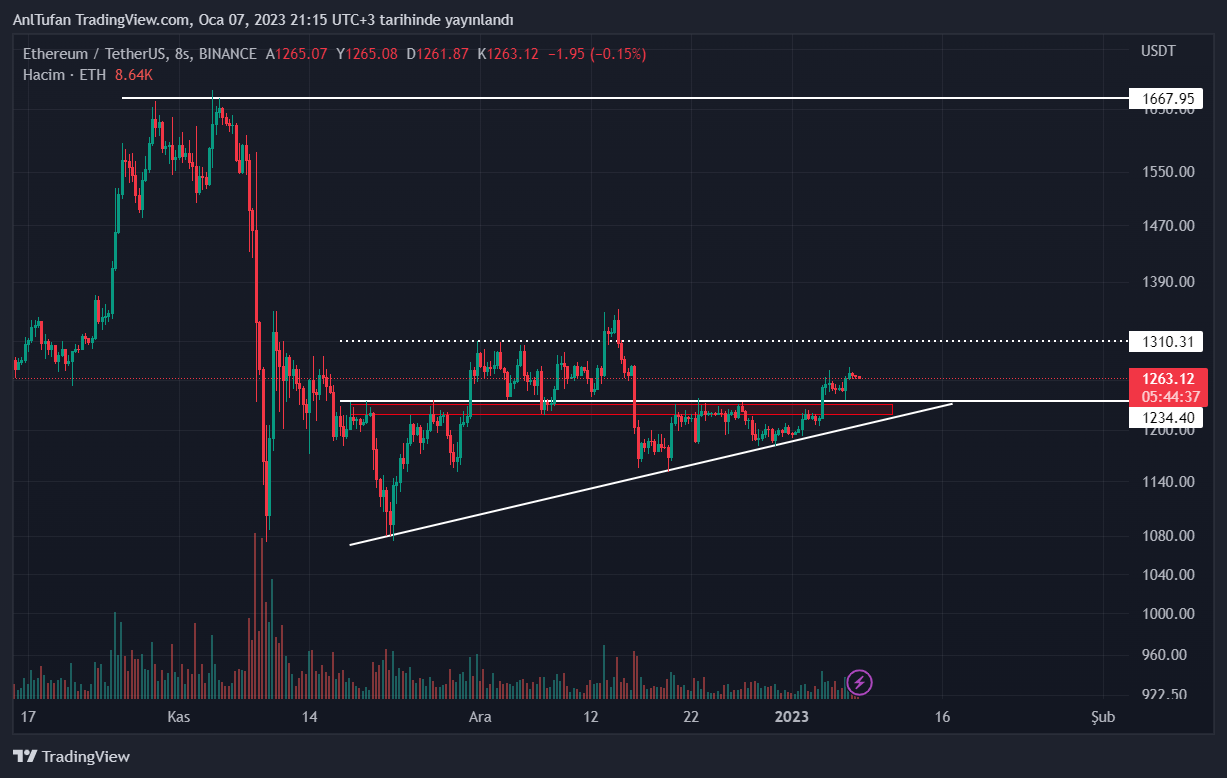 Bu direnci yaptığı retestler ile birlikte desteğe çevirmeyi başaran ETH, şuan itibariyle gözünü 1.310 dolar direncine çevirmiş gibi gözükmekte.