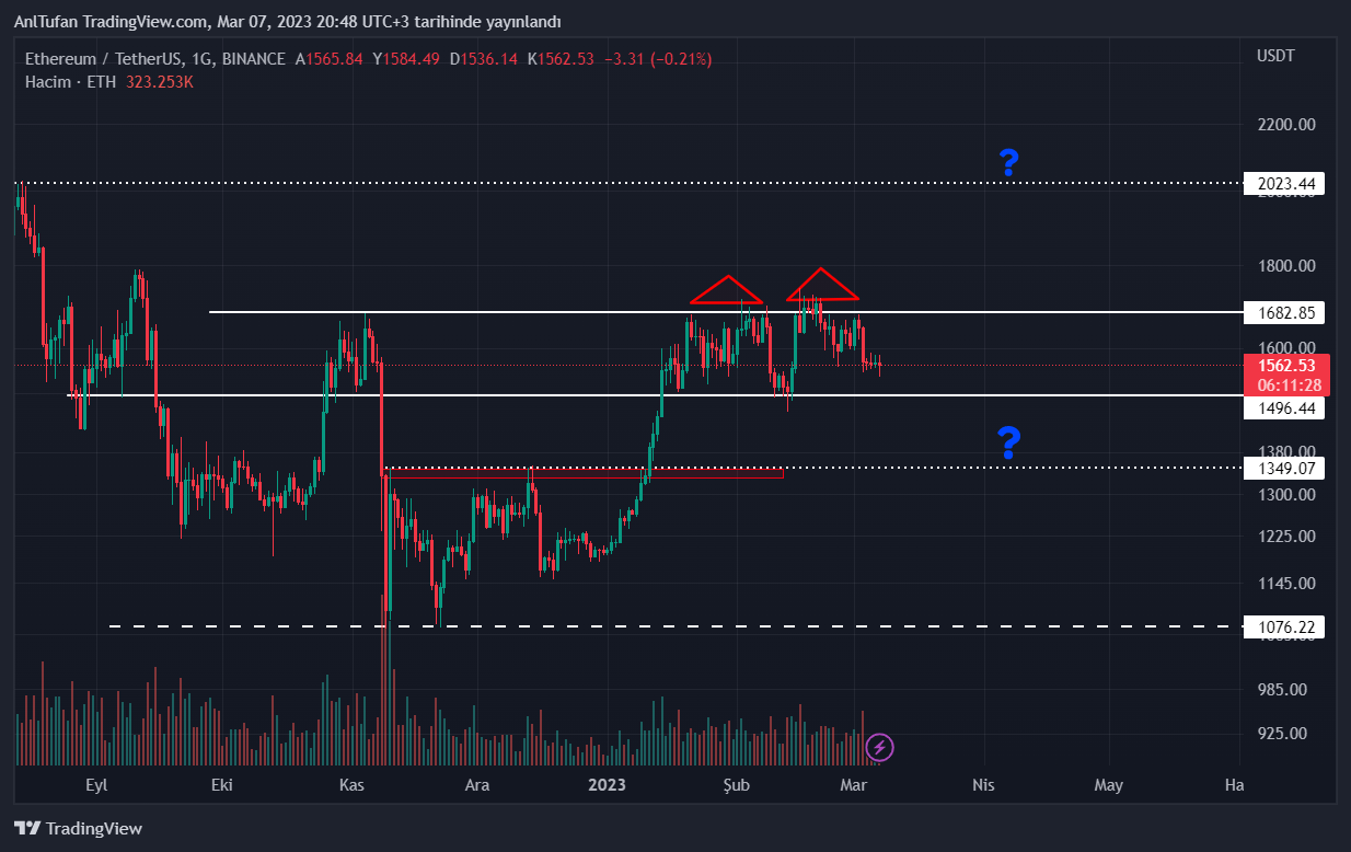 Bu veriler ve açıklamalar ışığında bir kırılım gerçekleştirebilecek olan ETH, 1.500 dolar desteğini kaybetmesi halinde kısa bir süre içerisinde 1.350 dolara kadar gerileyebilir gibi gözükmekte.