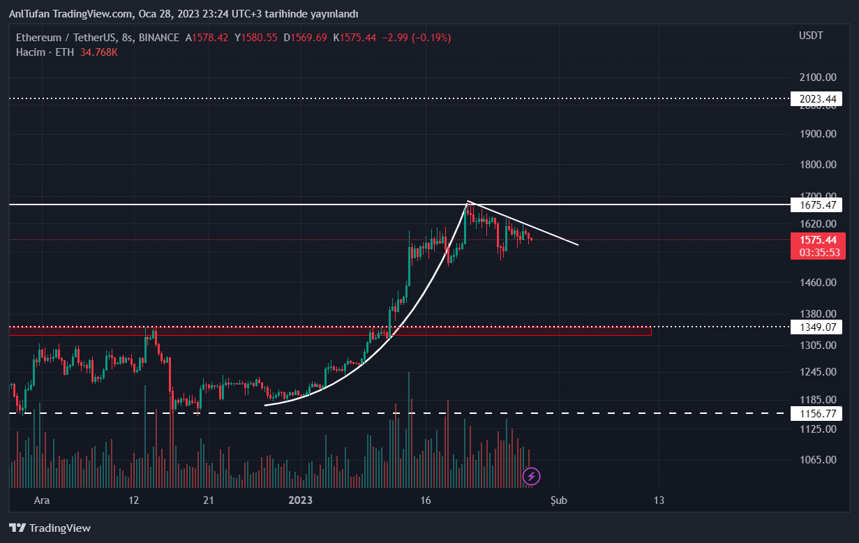 Yarın itibariyle ise kripto para sektöründe haftalık kapanışlar gerçekleşecek. Ethereum’un son durumuna baktığımızda ise olumlu bir haftalık kapanış yapabilmesi için son zirve noktası olan 1.675 doları aşması gerekmekte.